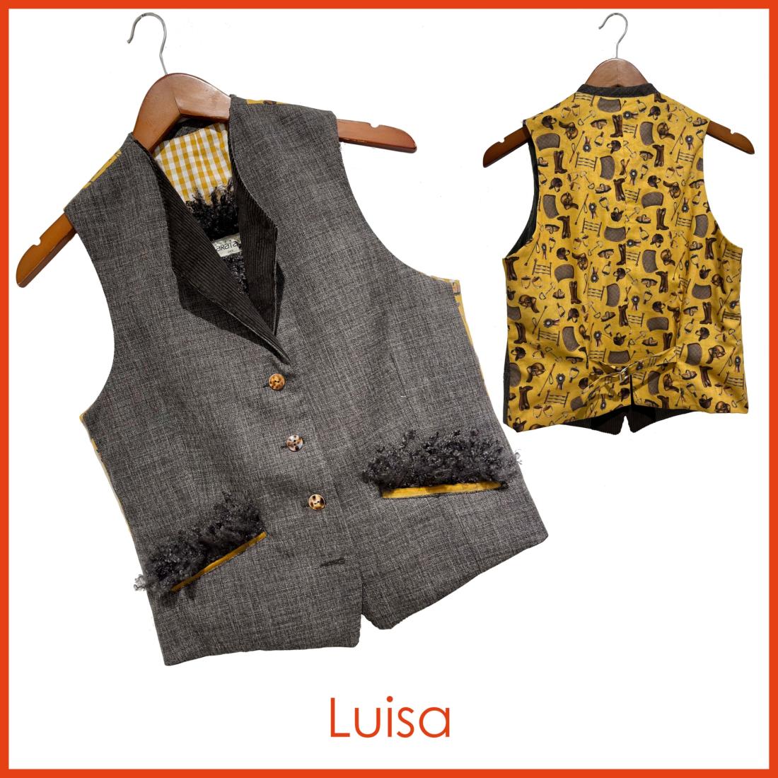 -Gilet en coton et lainage taupe.