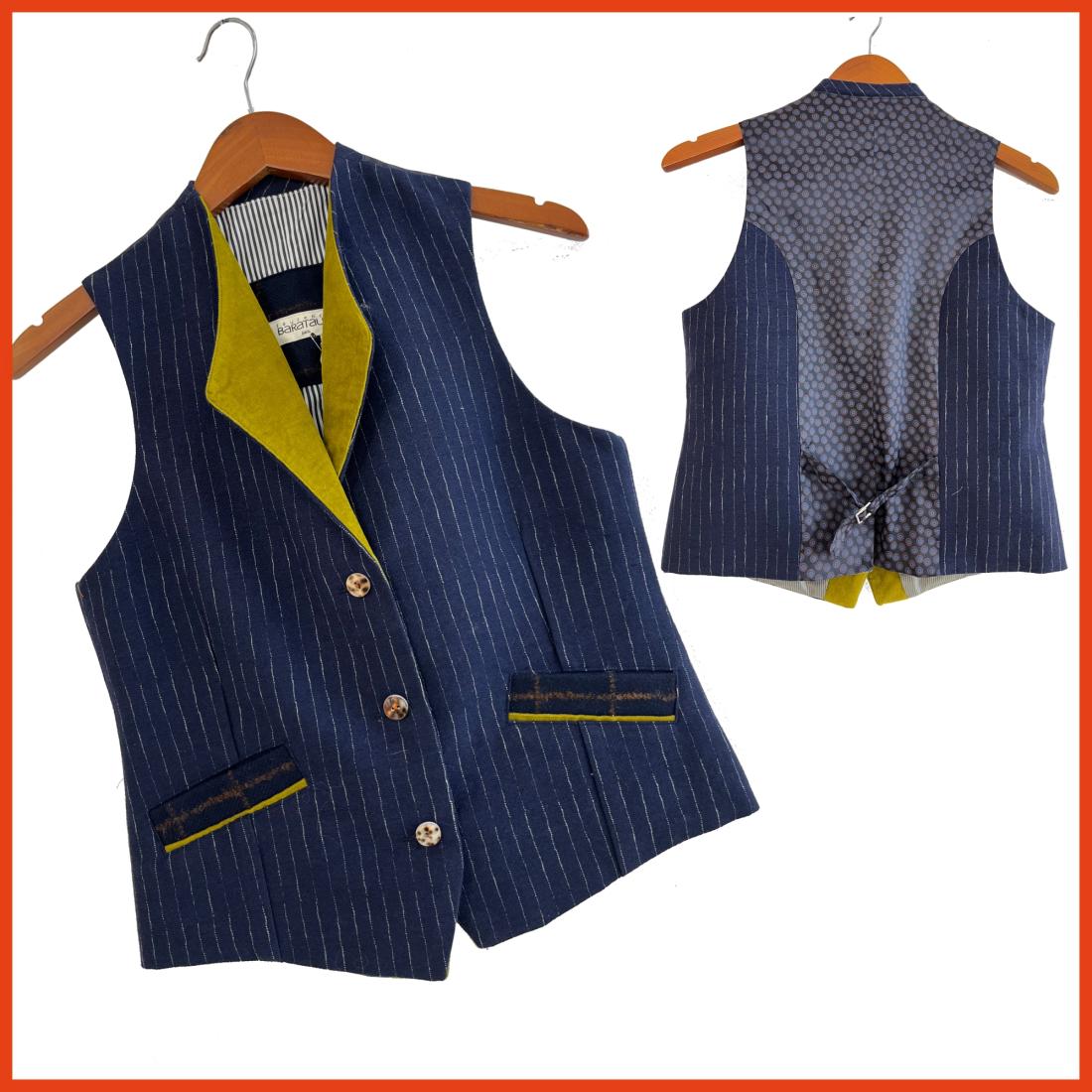 Ce gilet mi-saison est un classique de la collection, intemporel et audacieux par ses mélanges de tissus ainsi que des couleurs.